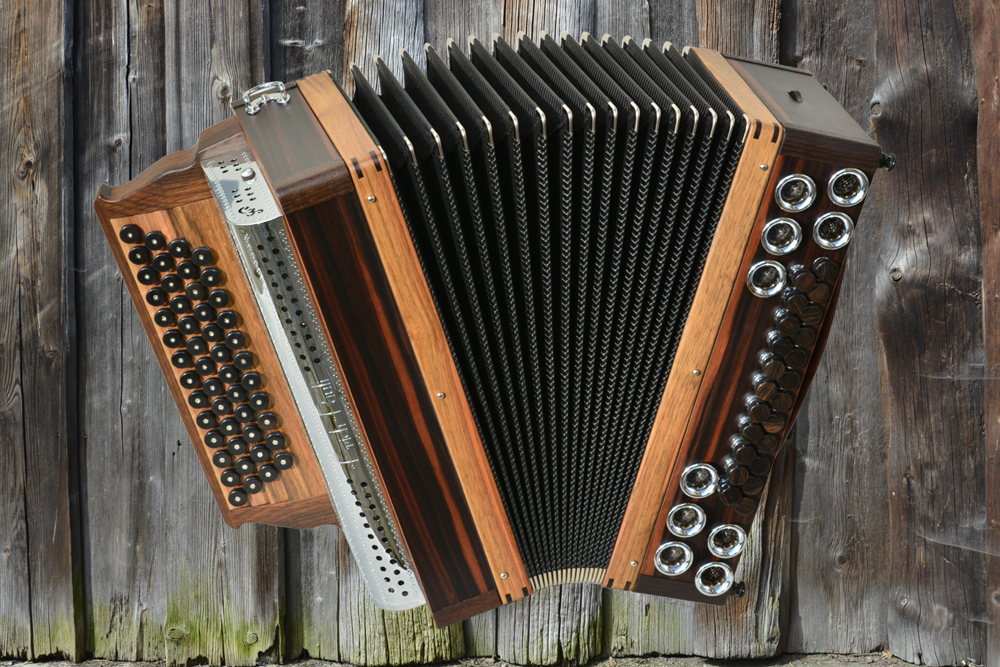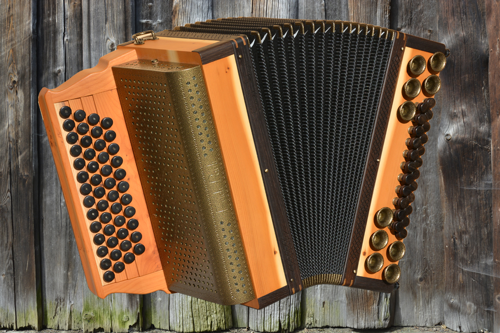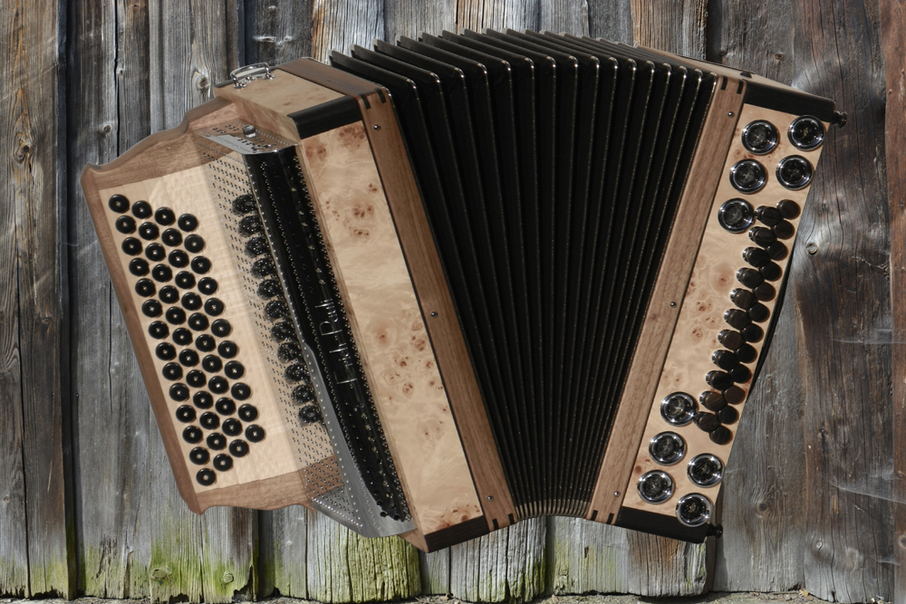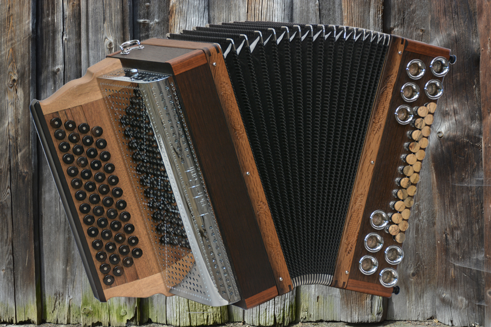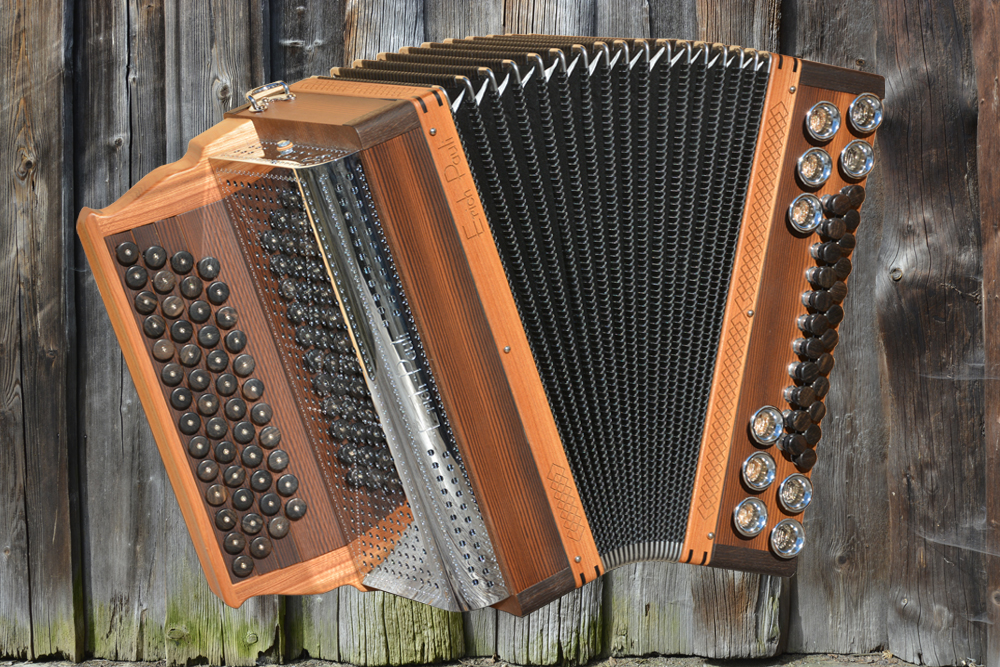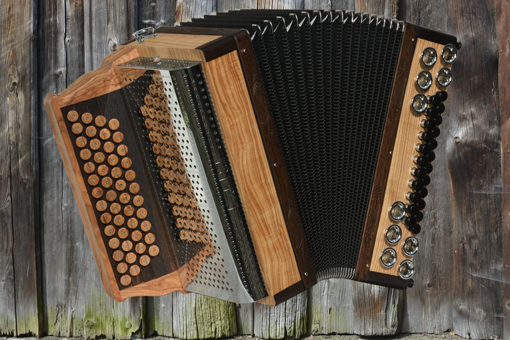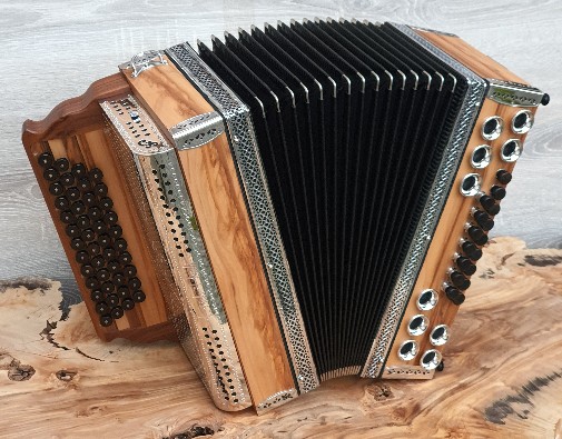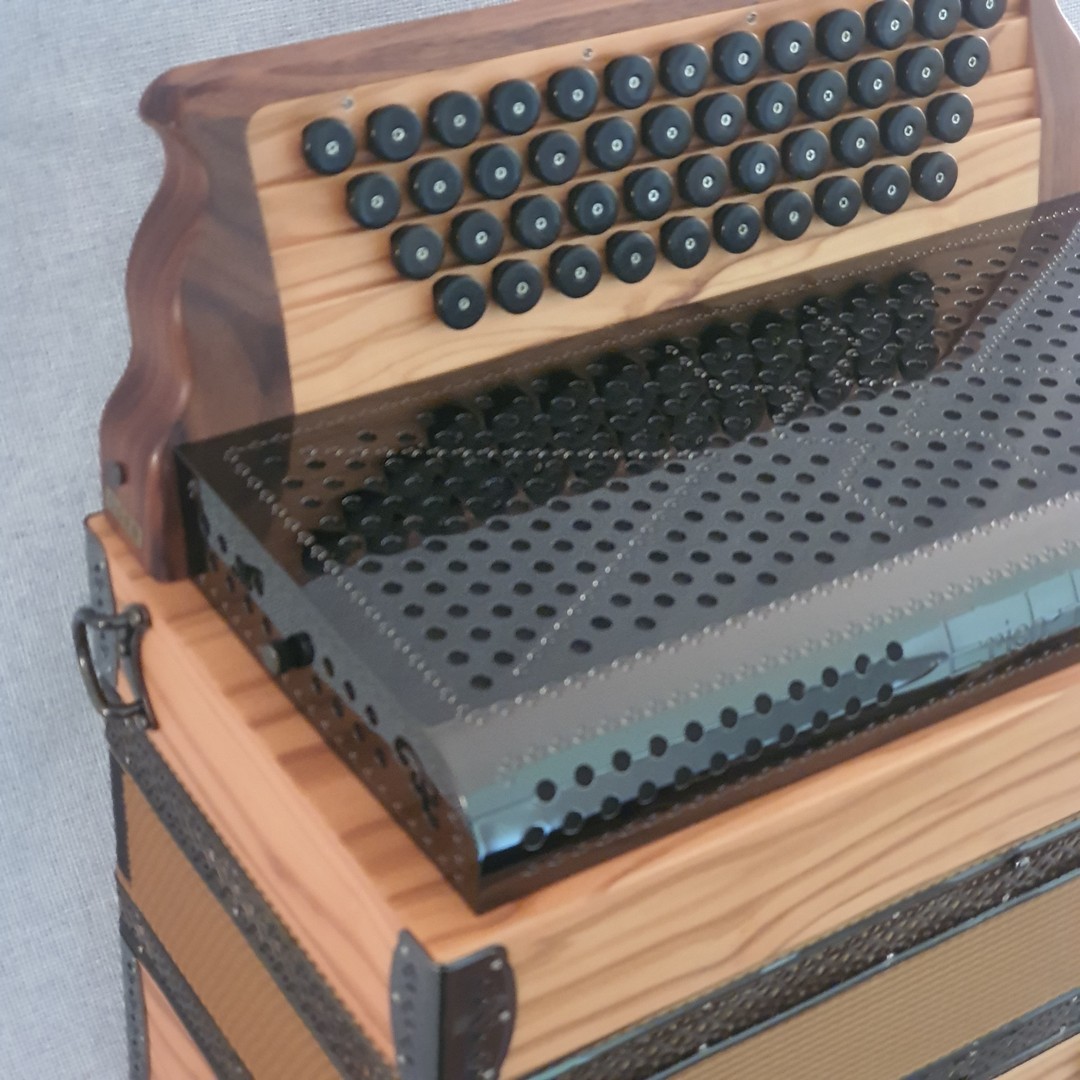 Dieses Modell ist die Orgel einer Harmonika. 50 Tasten, 23 Bässe.