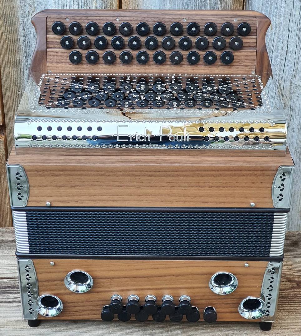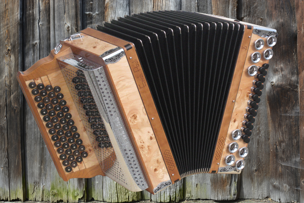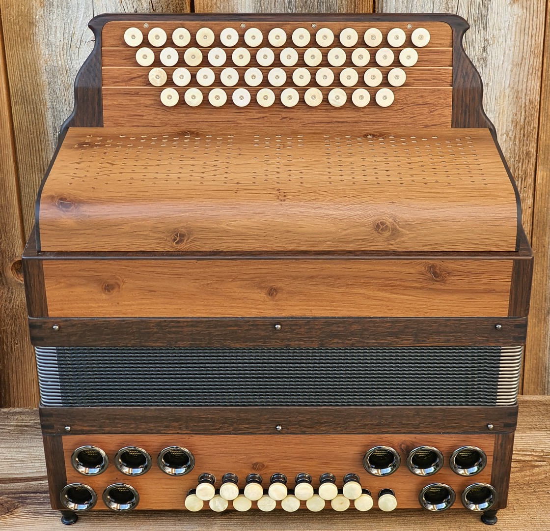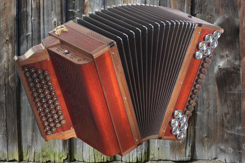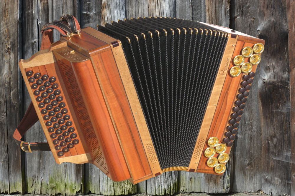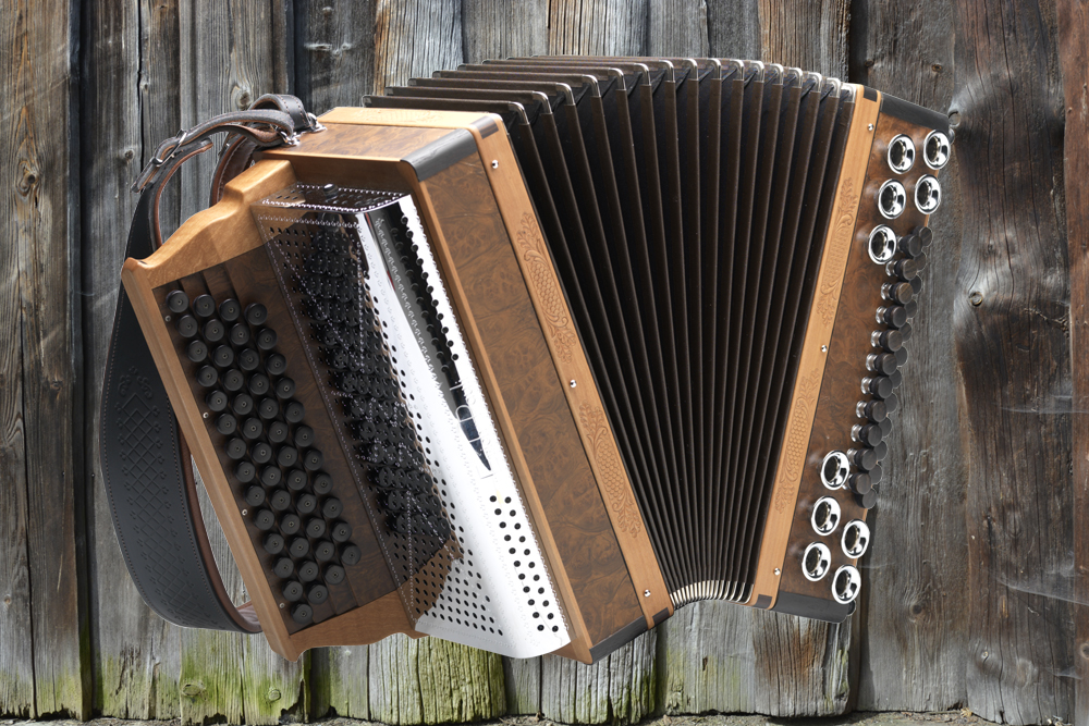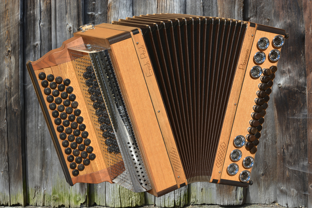 Dieses Modell ist die Orgel einer Harmonika. 50 Tasten, 23 Bässe.