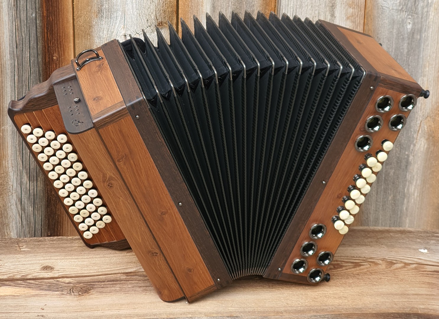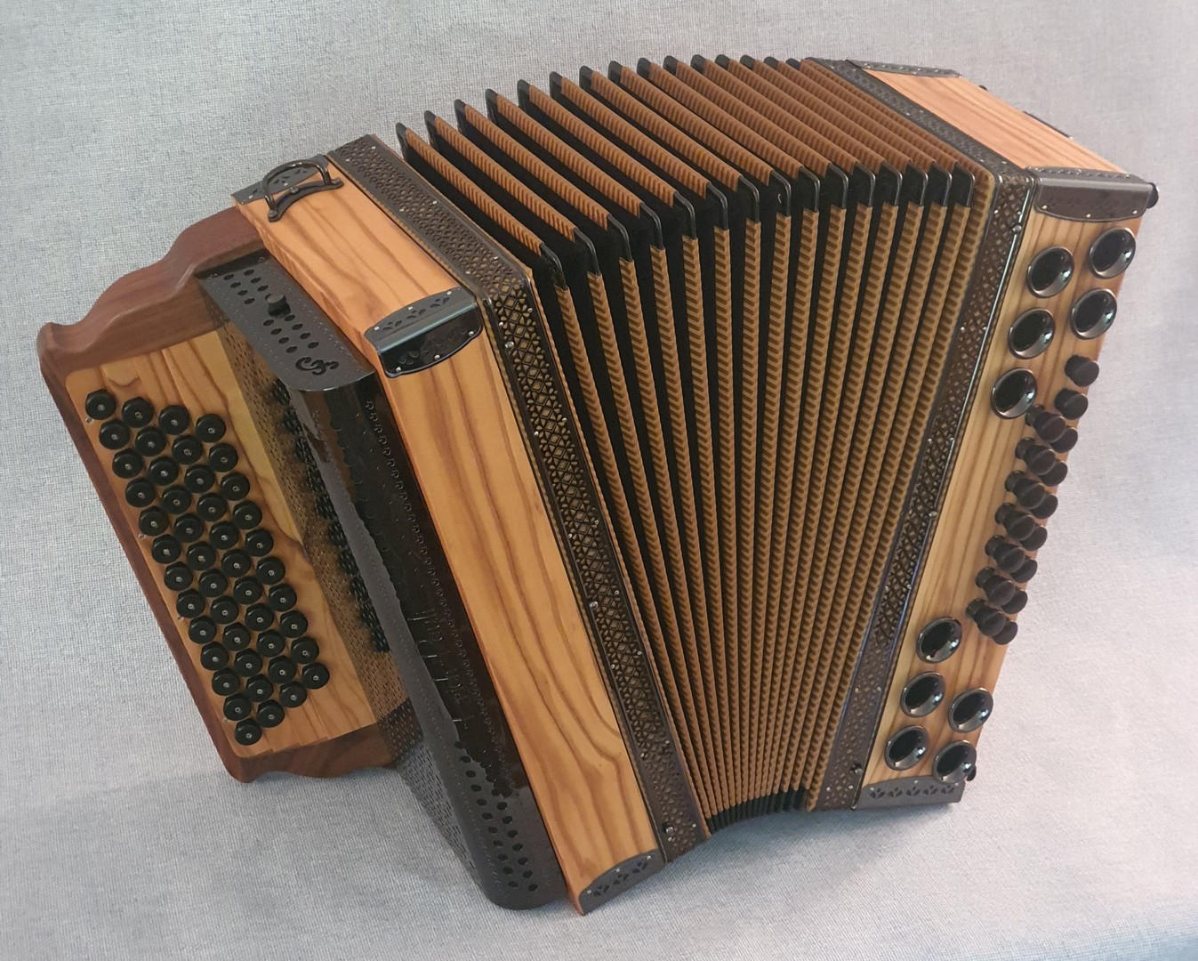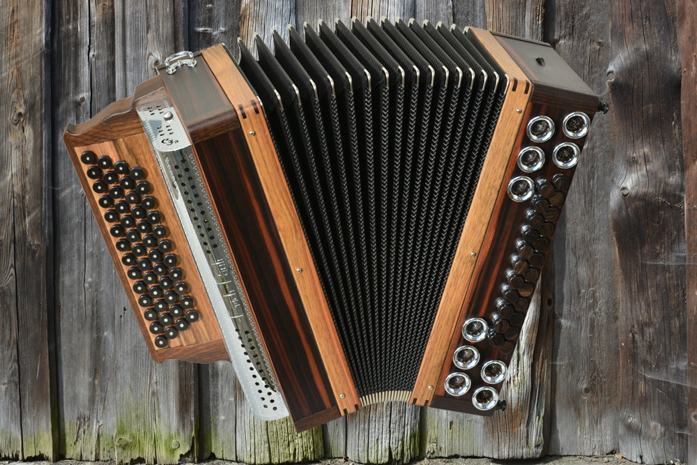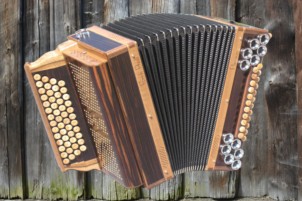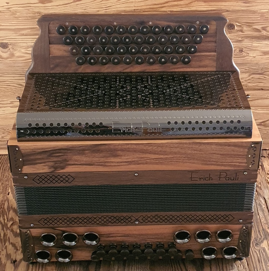 Dieses Modell ist die Orgel einer Harmonika. 50 Tasten, 23 Bässe.