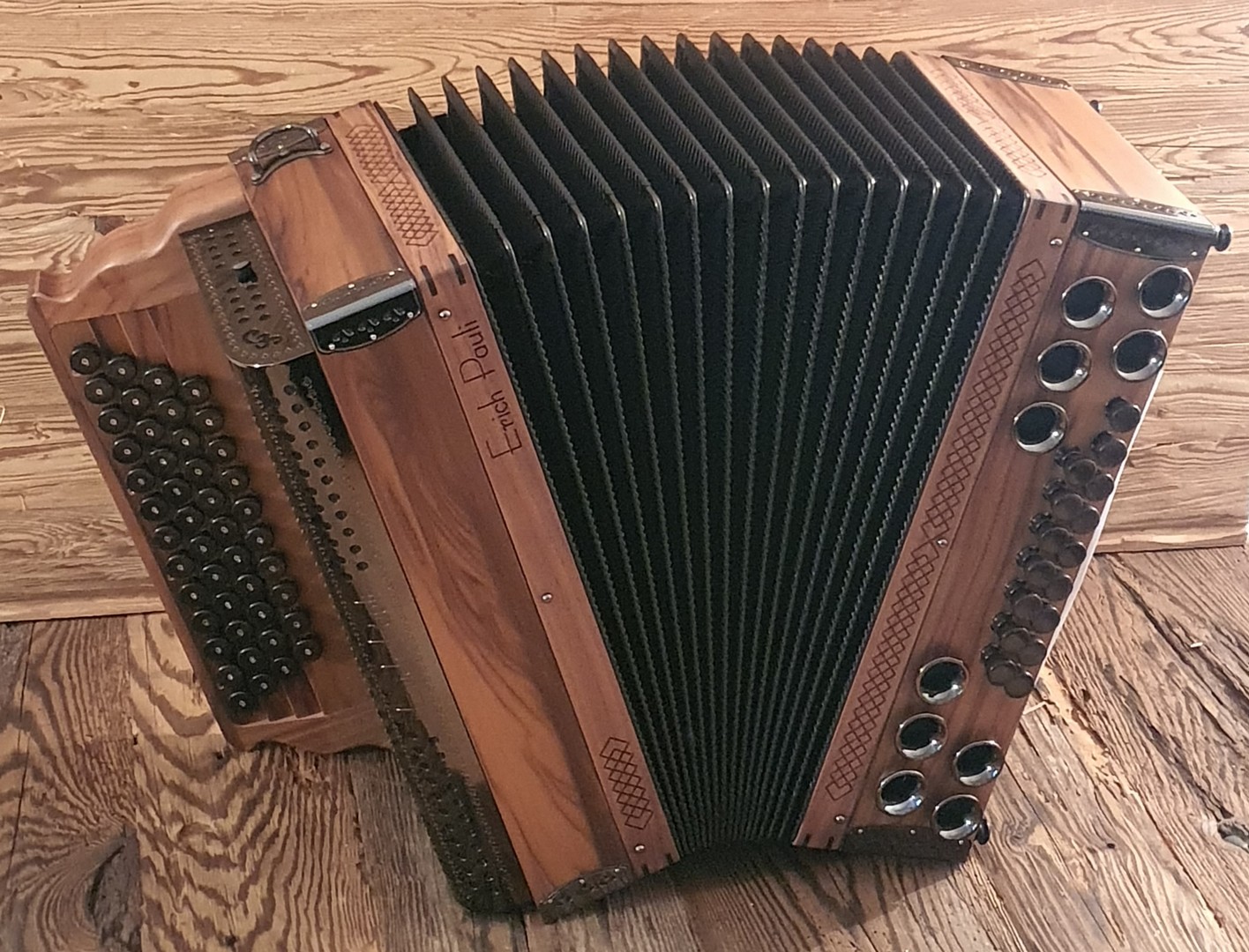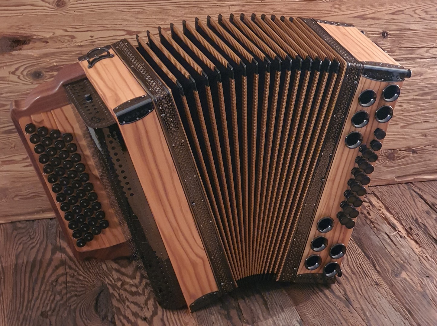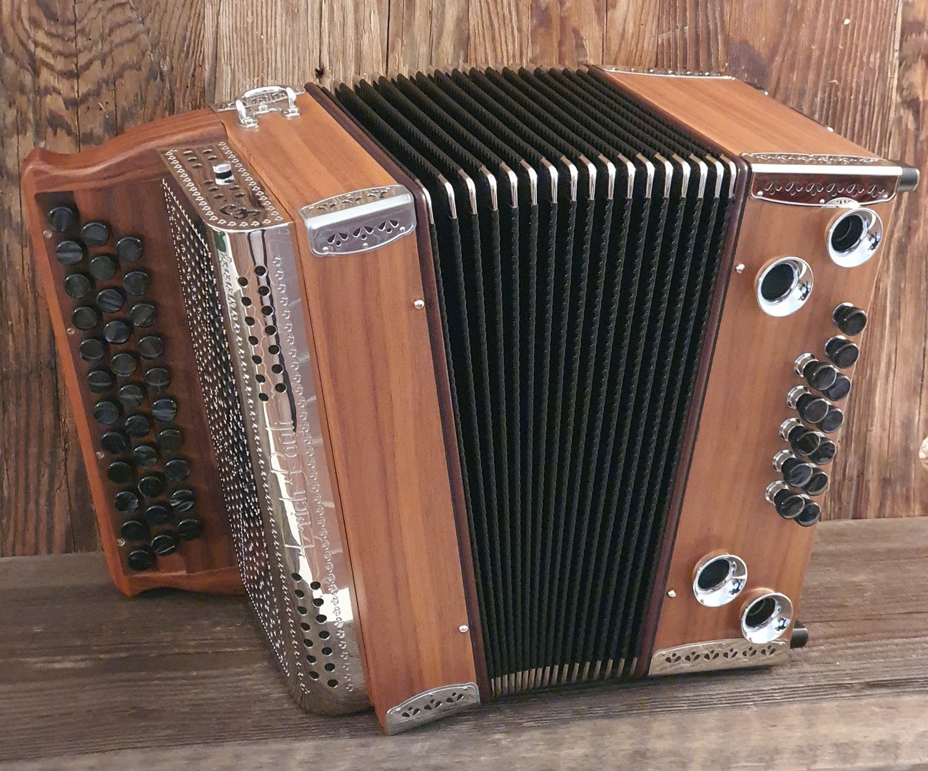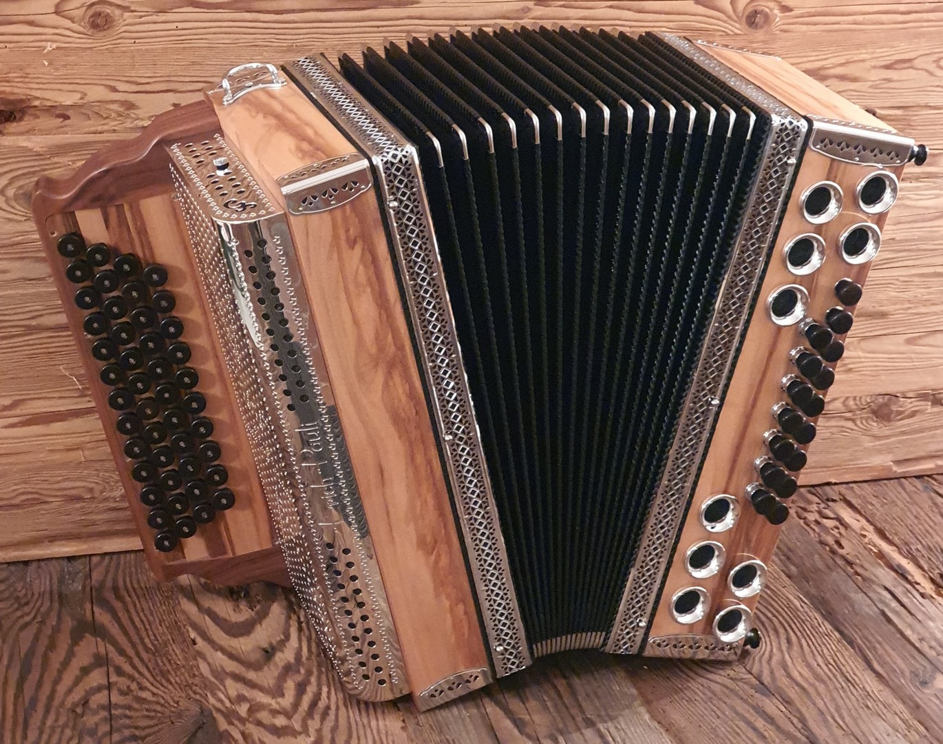Dieses Modell ist die Orgel einer Harmonika. 50 Tasten, 23 Bässe.