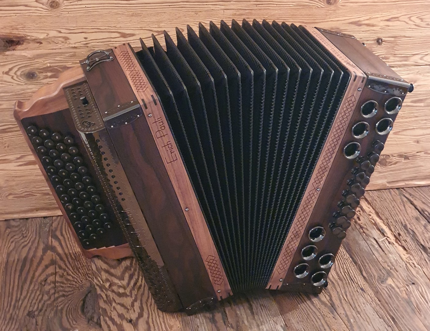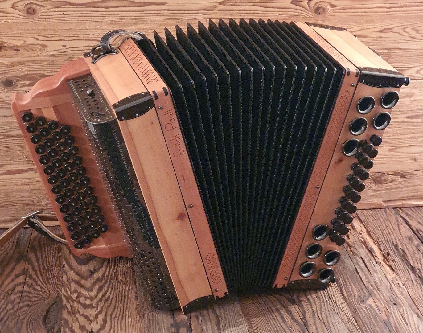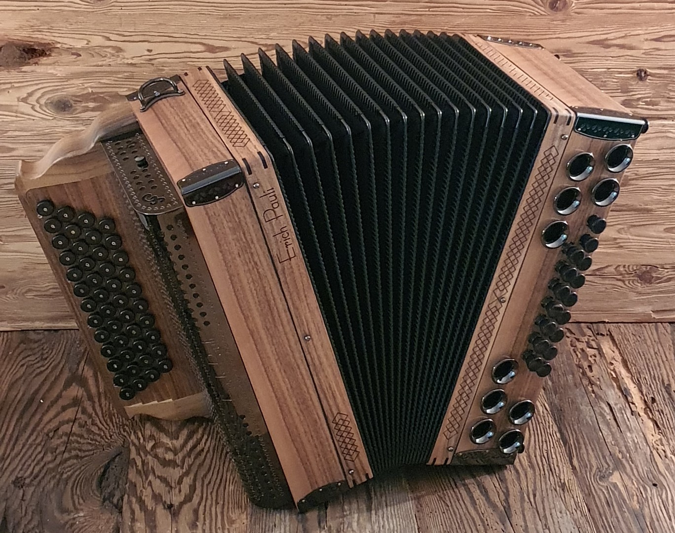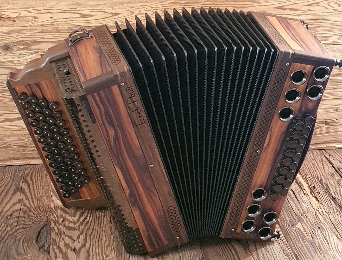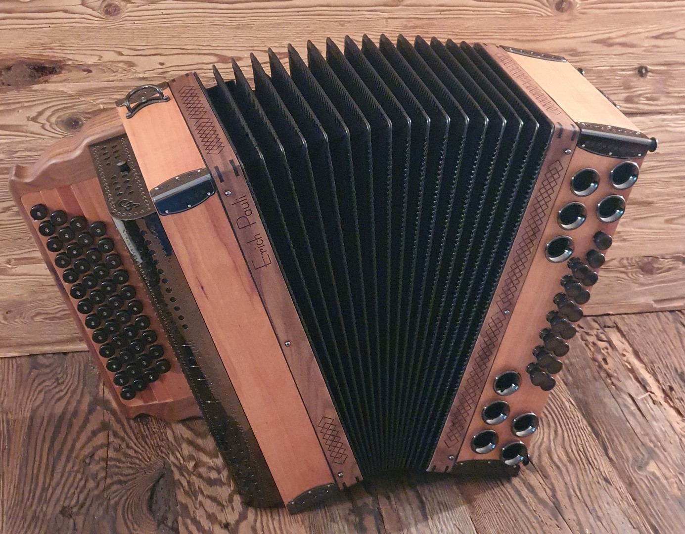 Dieses Modell ist die Orgel einer Harmonika. 50 Tasten, 23 Bässe.