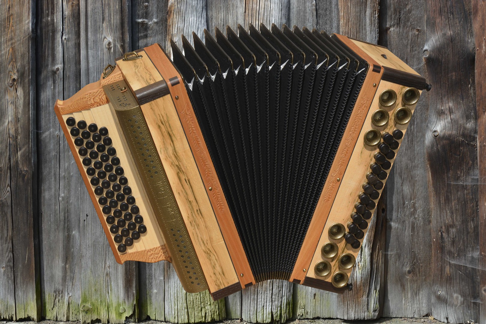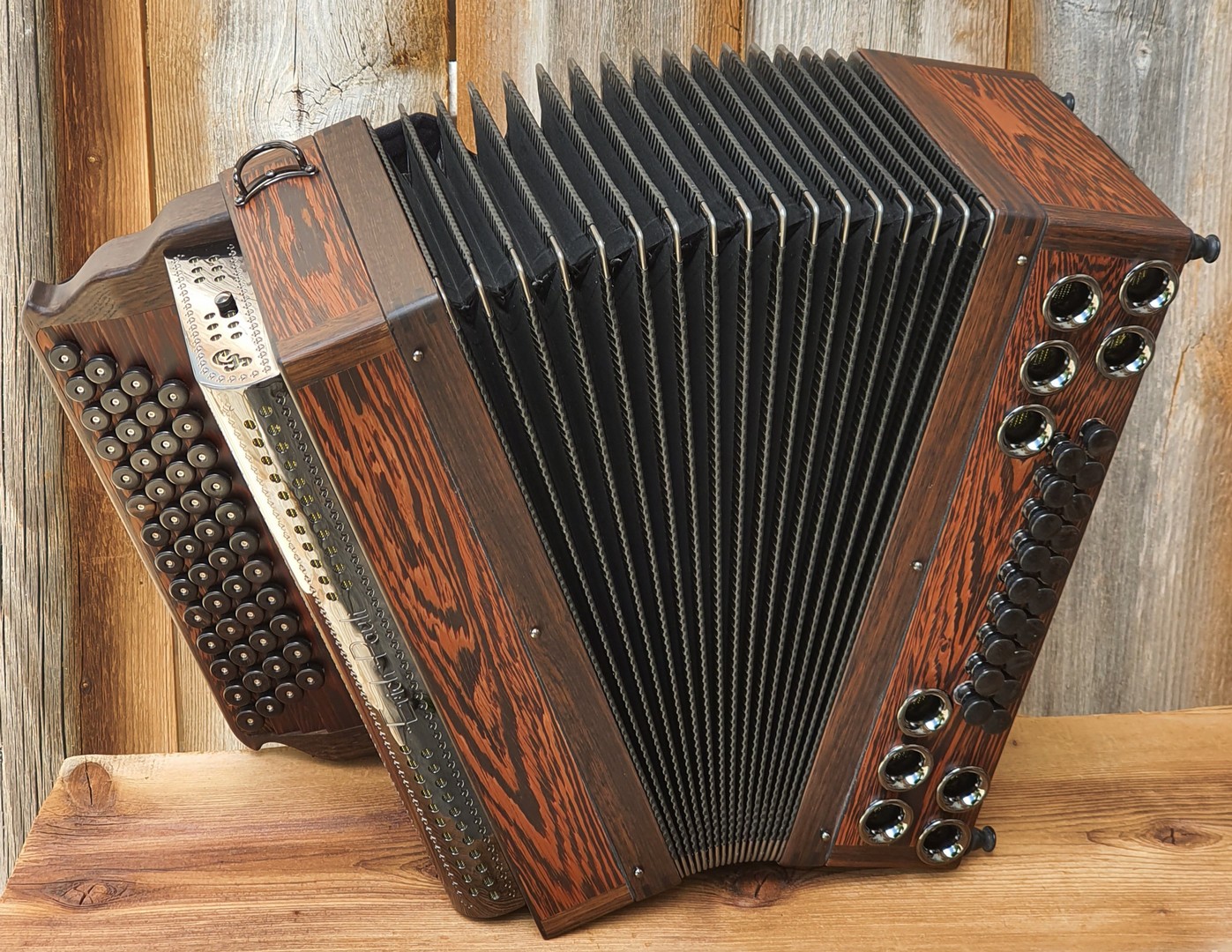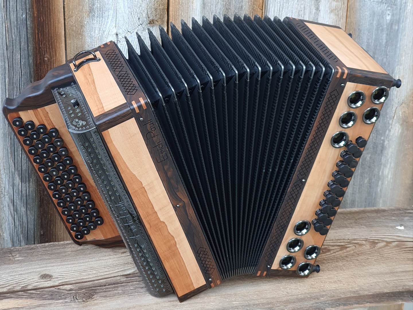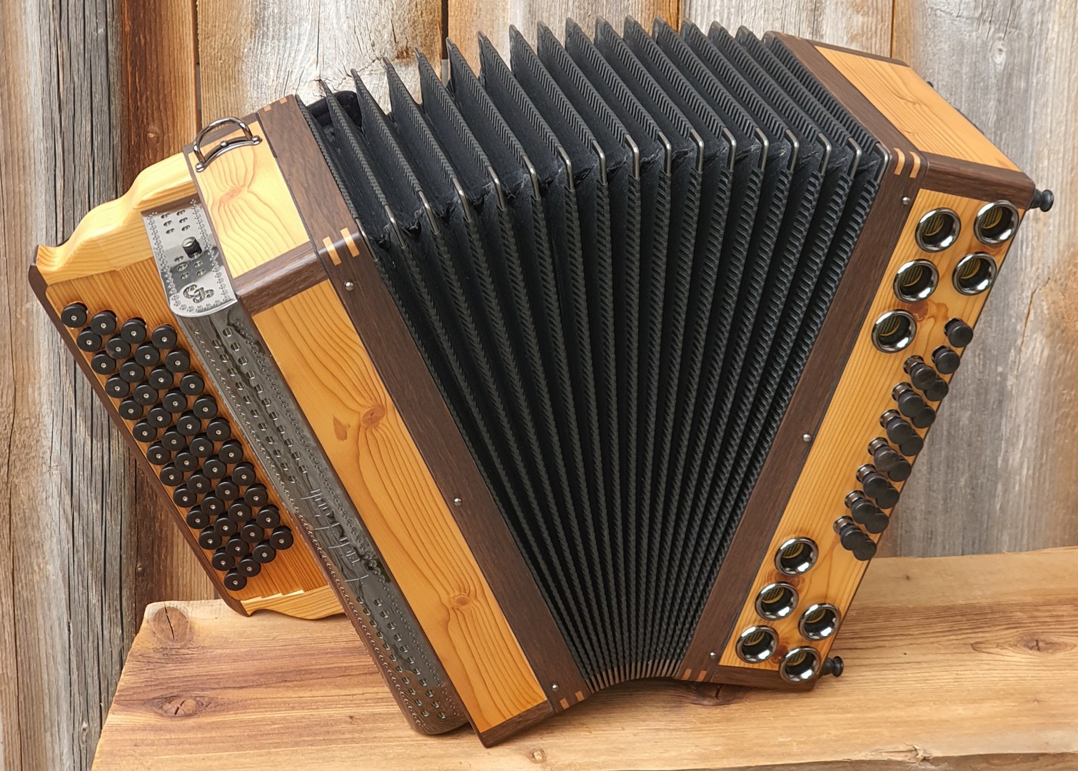 Dieses Modell ist die Orgel einer Harmonika. 50 Tasten, 23 Bässe.